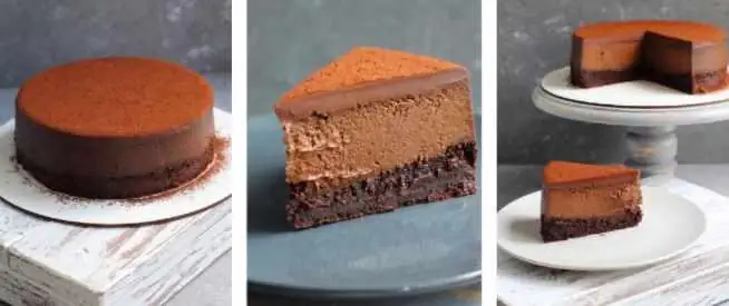 Сочный брауни в основе, сырный слой со вкусом темного шоколада и нежный и шелковистый шоколадный ганаш.