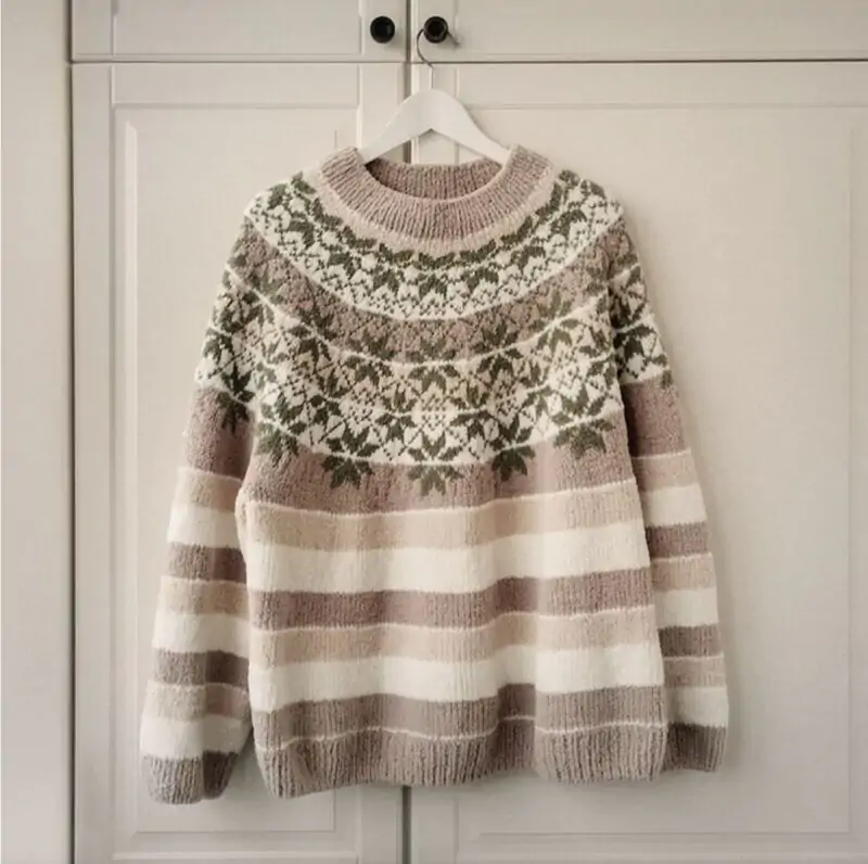 Лицевая гладь, полупатентная резинка, жаккард.