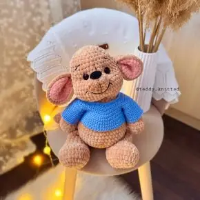 Игрушка ростом 30 см. Вяжется одной деталью. Расход пряжи основного цвета - 1,5 моточка.